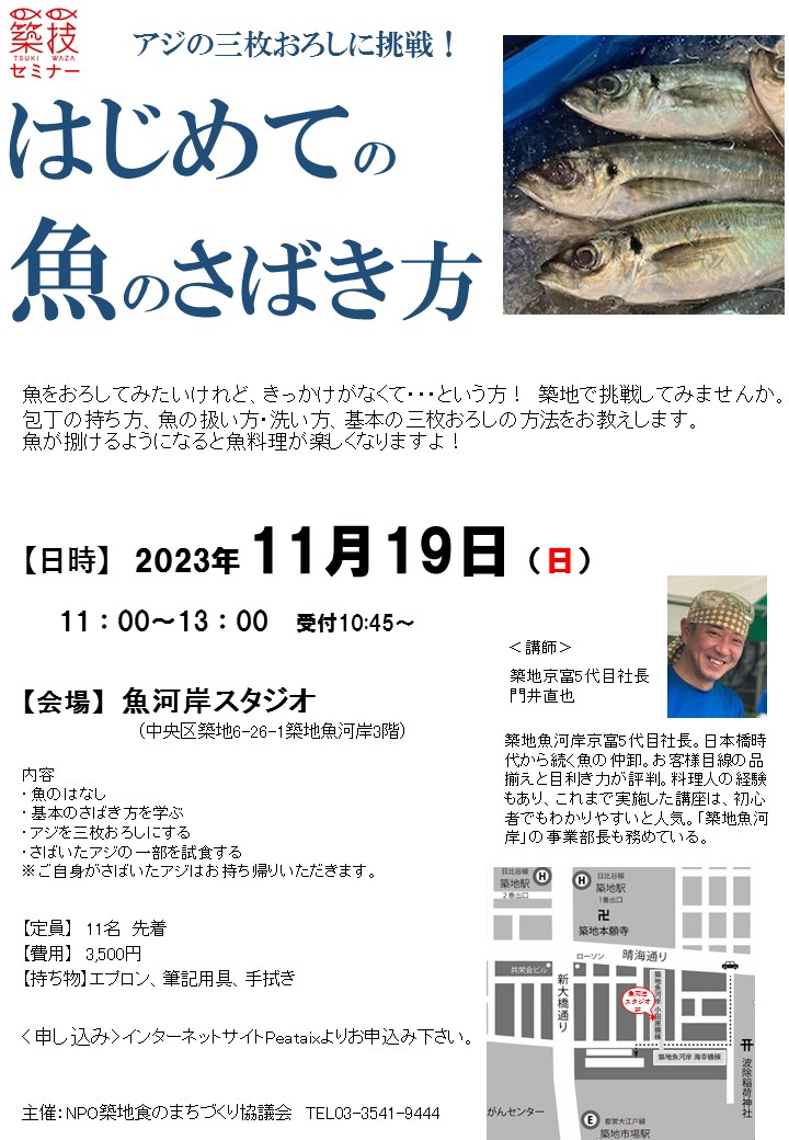 | お問い合わせ | NPO法人 築地食のまちづくり協議会 TEL 03-3541-9444 |