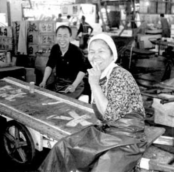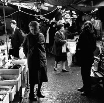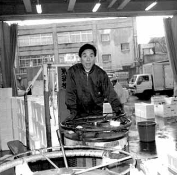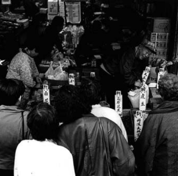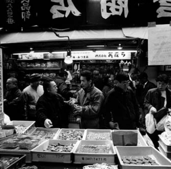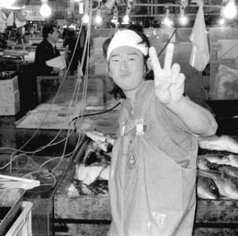 - 2003年、『東京・築地』(雷鳥社)という一冊の写真集が発刊されました。撮影者は、「朝の凛とした空気の中でカメラを構える…」東京写真学園出身の若手写真家集団「Beretta P-03」の総勢80名。市場という異空間に迷い込み、彷徨いながら、ベストショットを見いだしていく彼らのワクワク、ドキドキが伝わってくるようです。
